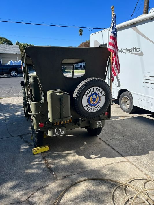 “1943 Ford GPW. Frame of restoration with original and reproduction parts. Original style Willy Overland Type 440 Go-Devil 134 CI engine. 12 volt system, pointless distributor, reproduction carter carburetor with period correct reproduction wiring. Runs well, not a trailer queen. Restored to represent USAAF 15th Air Force MP vehicle with period correct light and siren. Must see to appreciate it”