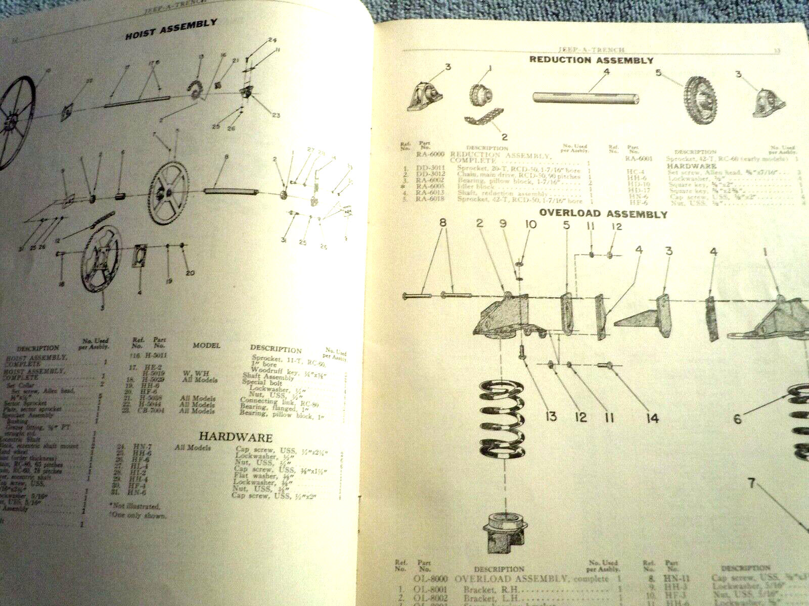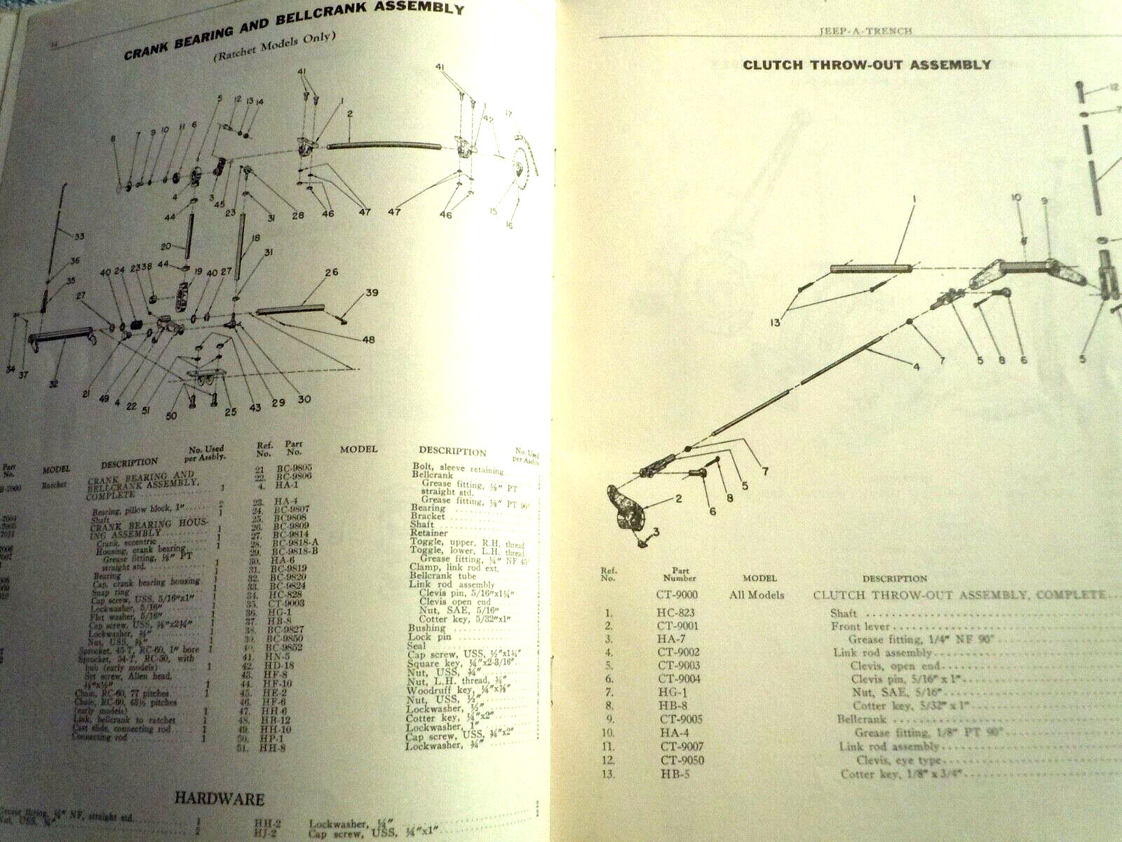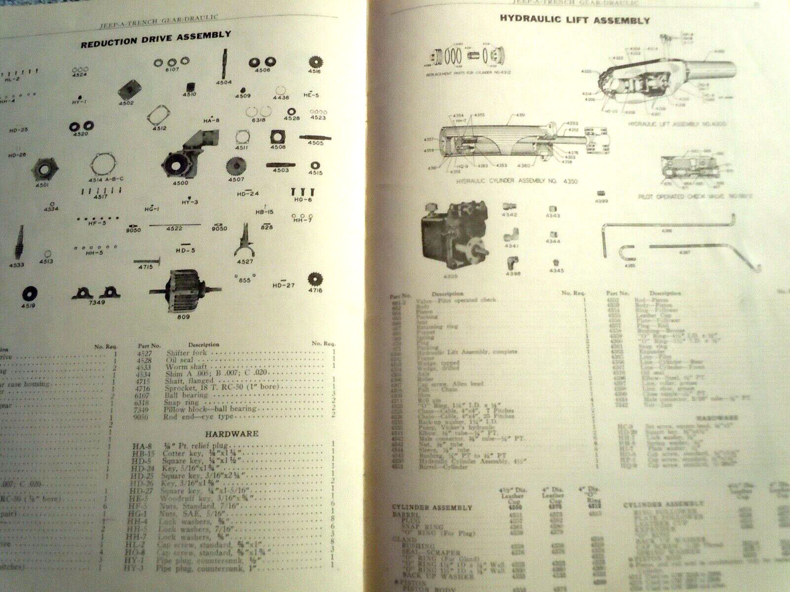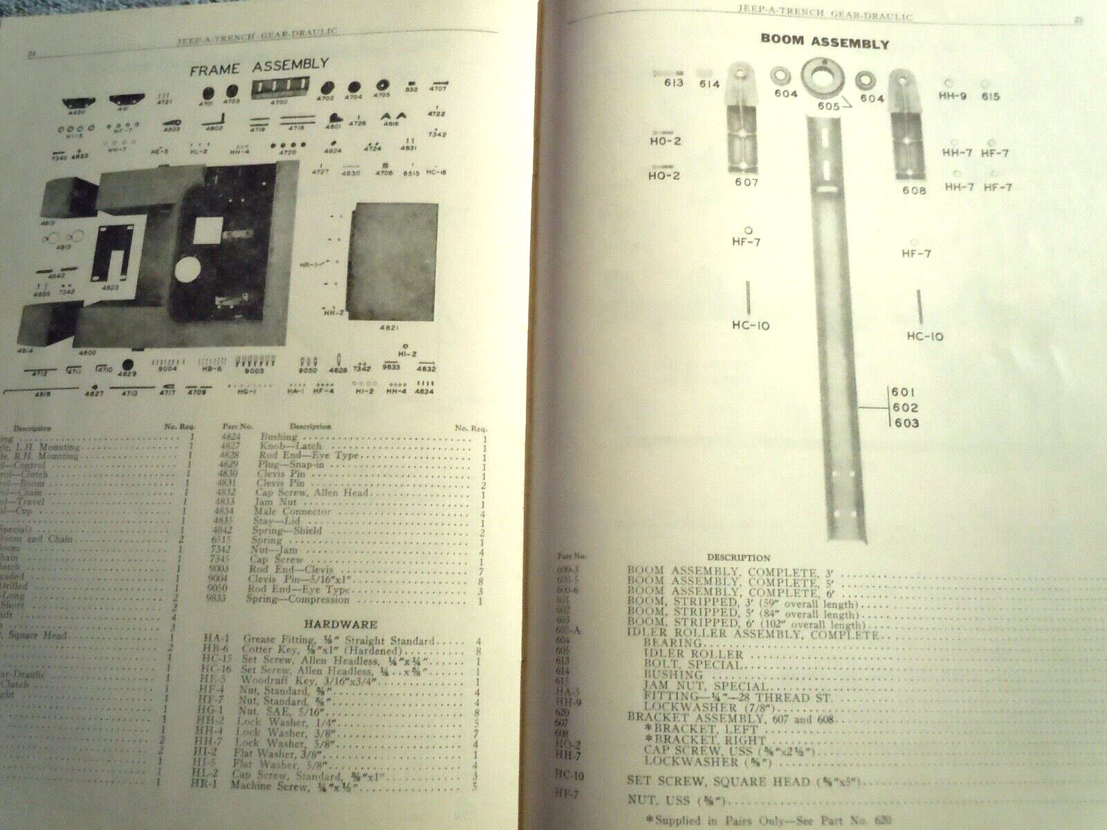 “THIS AUCTION IS FOR A RARE, ORIGINAL “JEEP-A-TRENCH & JEEP-A-TRENCH GEAR-DRAULIC PARTS LIST MANUAL”