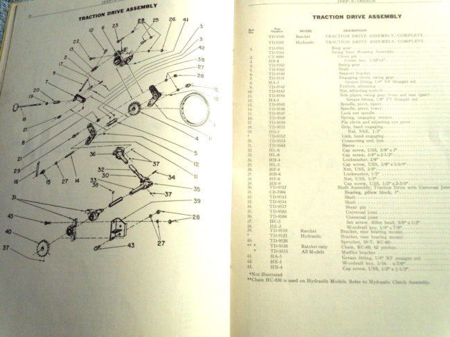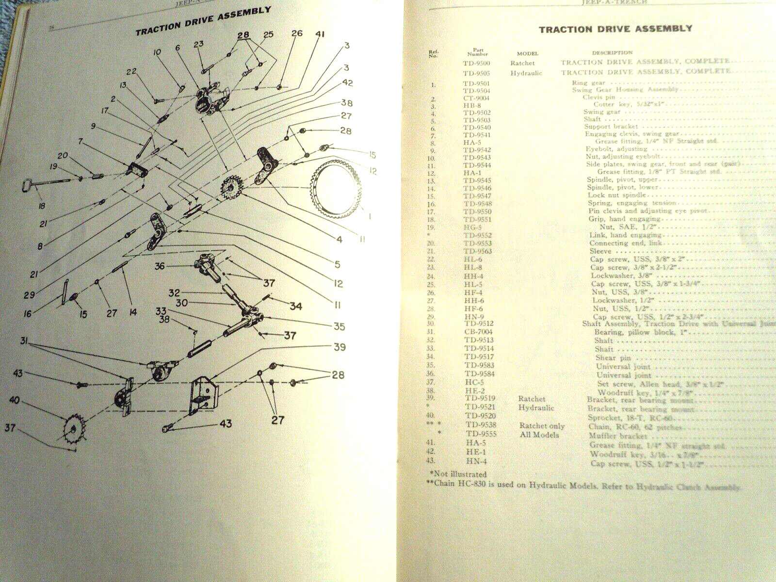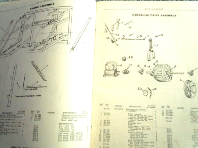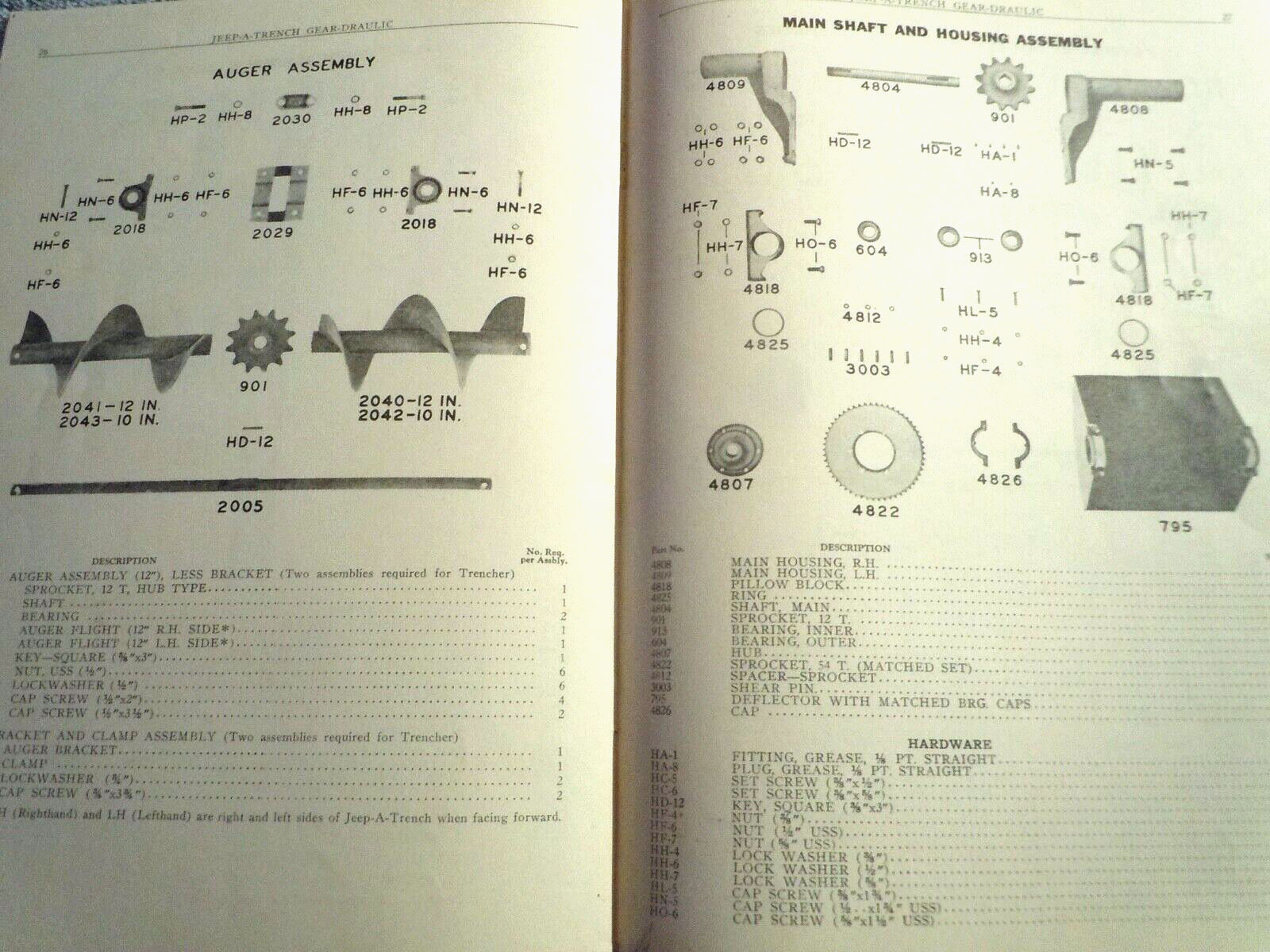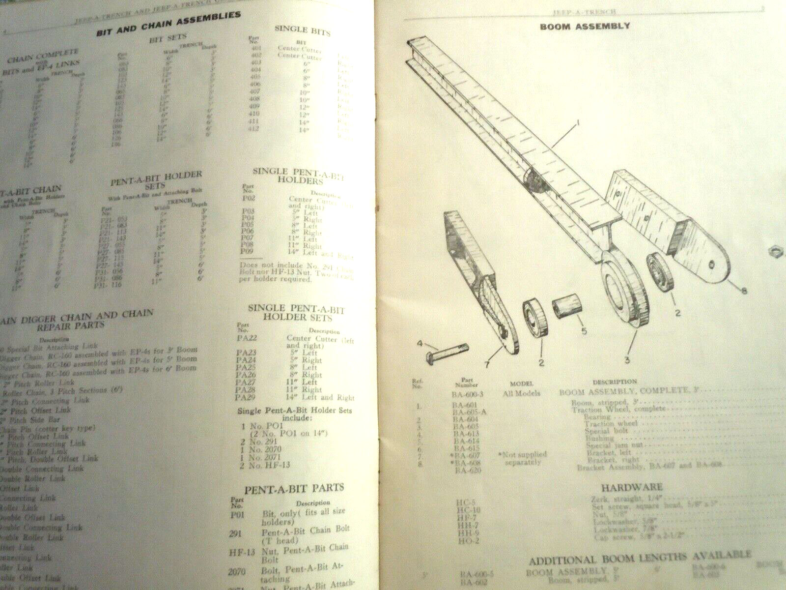 “THIS AUCTION IS FOR A RARE, ORIGINAL “JEEP-A-TRENCH & JEEP-A-TRENCH GEAR-DRAULIC PARTS LIST MANUAL”