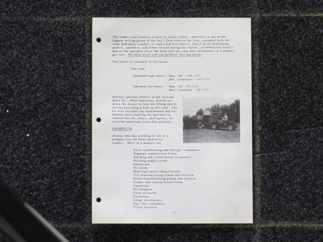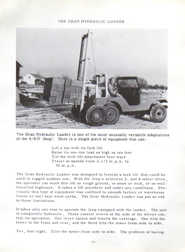 That got me searching for info I had on the Gran. Turns out, I had somehow already published these docs and the video and more here: http://www.ewillys.com/2020/04/30/gran-manufacturings-hydraulic-loader/