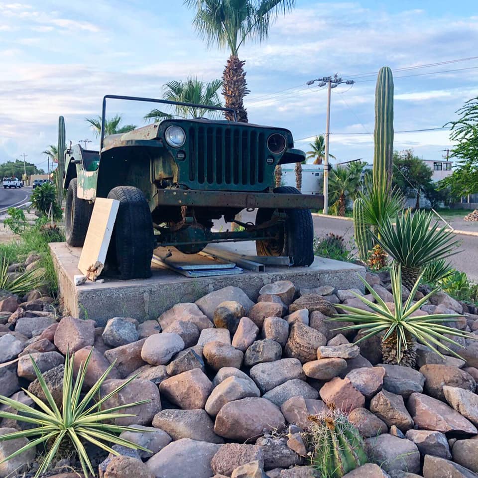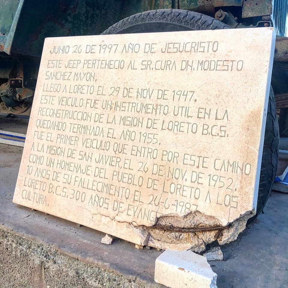 According to Guillermo’s explanation, “This is a monument to a willys. It was the first vehicle that entered the San Javier Mission to the Sierra de la giganta with an altitude of 1,668 m above sea level in 1952. helped rebuild the mission and saved many lives. Loreto Peninsula of B.C.S. Mexico”