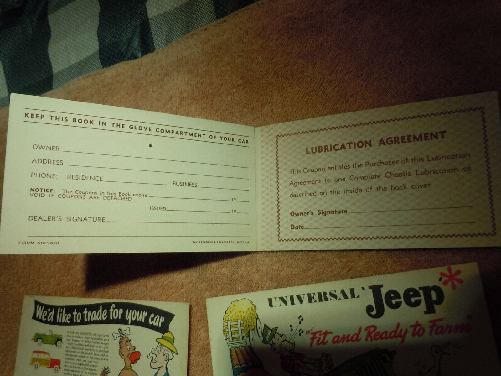 “THIS AUCTION IS FOR 10 VERY RARE,ORIGINAL EARLY WILLYS JEEP SALES & SERVICE DEALER POSTCARDS, & AN ORIGINAL WILLYS OVERLAND LUBRICATION AGREEMENT BOOKLET FOR THE GLOVE COMPARTMENT