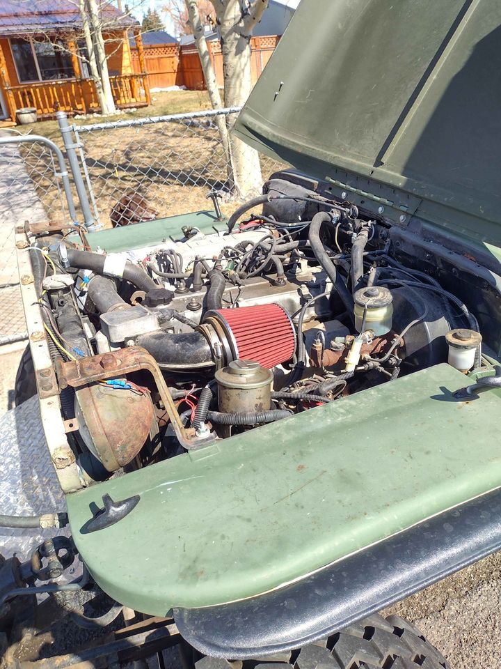“Has a 1985 Toyota chassis, 1986 Toyota 22RE engine, fuel injected, 5 speed manual transmission. Power steering, power brakes, front disc brakes. New soft top and new windshield. Also an extra engine and tranny and roll bar. Asking $8000 OBO”