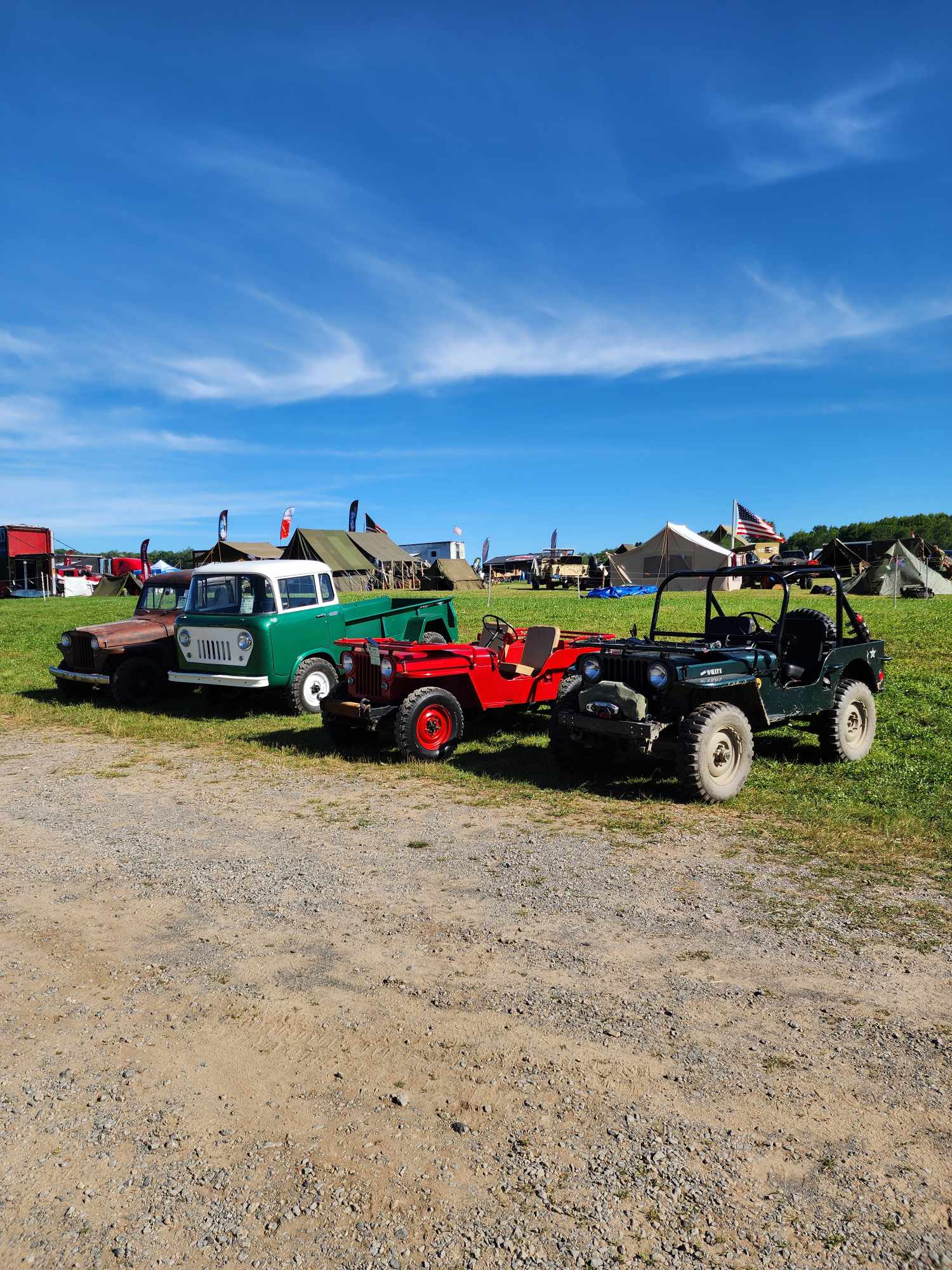 Thanks to Roger Martin for sharing these Saturday morning photos from the Bantam Festival’s jeep history display. You can see Roger’s M-677 and his FC Fire Truck in a couple photos.