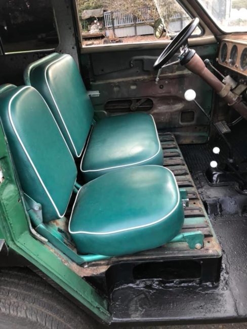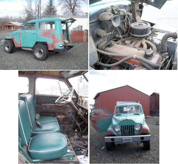 I can see the Studebaker parts in the hood, slanted windshield, and doors, the dashboard. The headlights are Stude. Behind the doors is a mystery, but the side windows, seats and floorboard wood are Willys wagon units as are the rear tailgate and windows. The grille and front fenders are CJ5 with modifications. What chassis is under it and where did that slant six come into play? I think a lot of Olympia beer was consumed during the planning and construction of this unique vehicle!