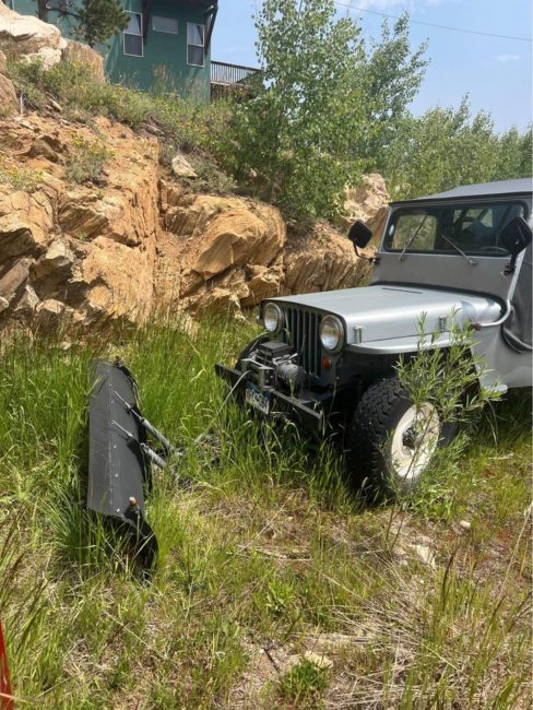 “Willys with a plow. I plowed with it sparingly for a few years. Has sat since 2020 but ran when parked. Has a 70s Chrysler v6 in it and original transfer case and transmission. All 4 wheels are locked when in 4 low. Will crawl over anything. Goes about 40 mph max downhill. Has roll cage and nice but dirty interior. I spent almost 3k getting the brakes switched over to pneumatic and wheel spacers on the front. Give me an offer! Comes with extra transfer case for parts.”