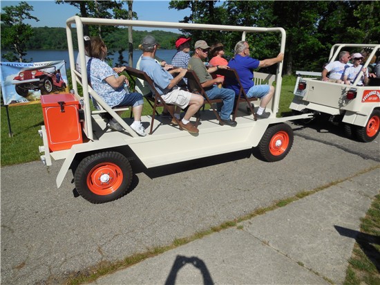 “Operation Long Jeep is for sale. It is a 1958 CJ5 stretched with matching Jeep-themed trailer for moving people. The 4 cyl F head runs great. The 4WD works great and there are dual rear wheels. It includes a the framing to install a canvas top on the jeep, but no canvas top is included.”