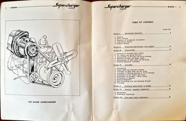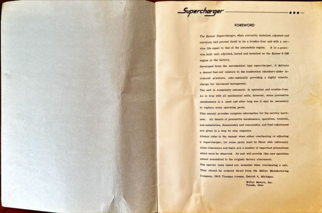 Here’s the Willys Service Bulletin that announced the Kaiser Willys Supercharger, along with the manual and a few pics of a super charger at the bottom of the post (from a 2014 post).