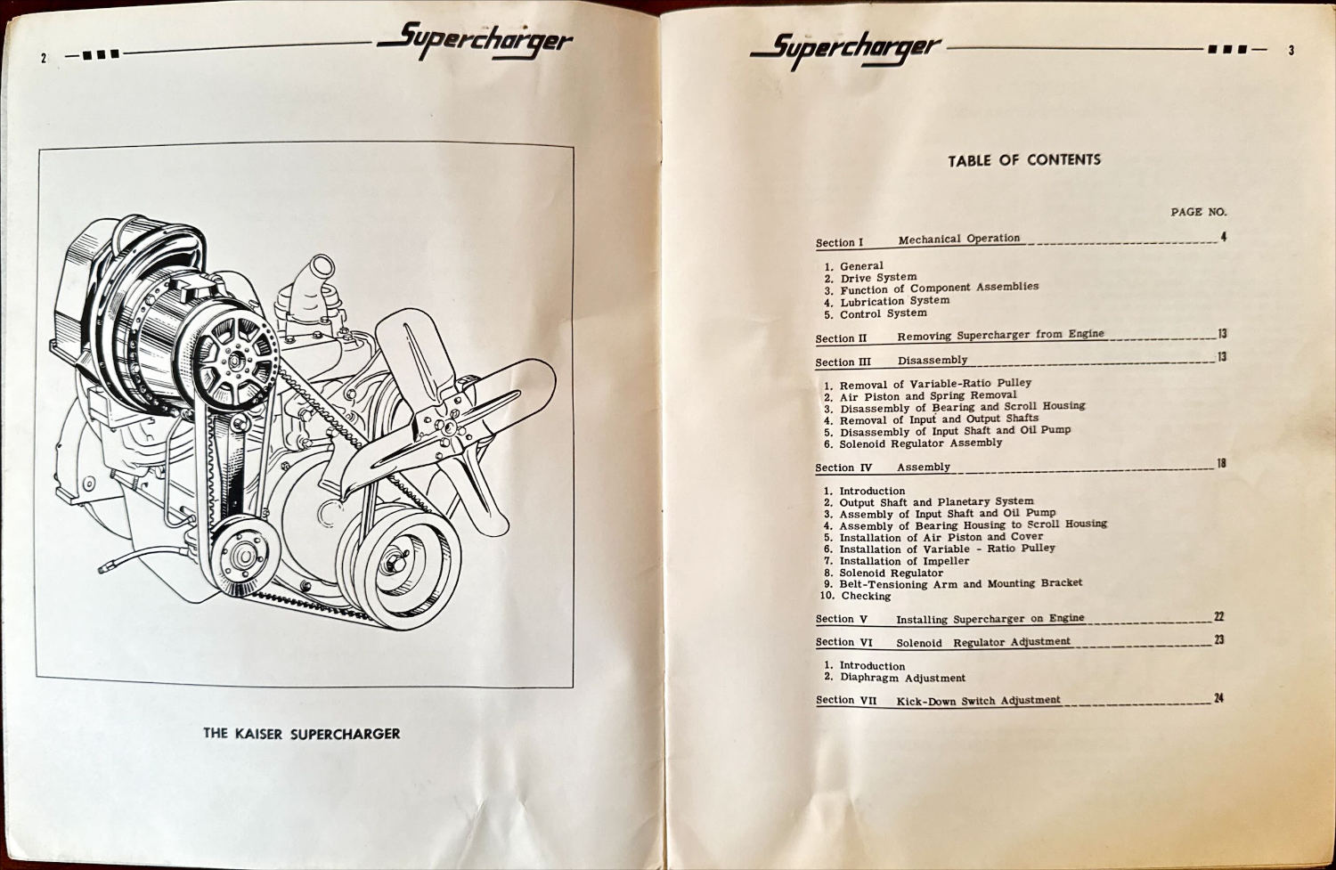 This is basically the factory parts for the Kaiser Darrin with the supercharger. It is a Paxton-McCulloch supercharger; you can find information on these by searching around.
