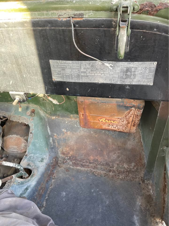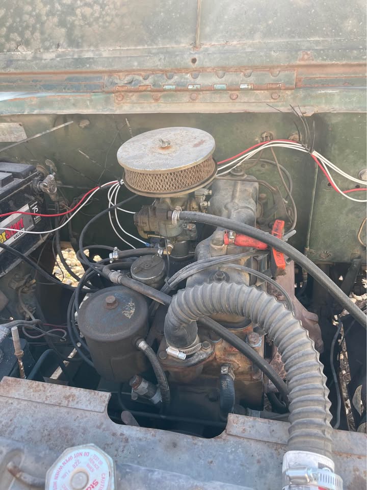 1953 Willy’s CJ-3B The motor was stuck when I got it. It’s free now with a hone job and new rings. The valve seats were cleaned up as well. I have a 12v starter in it but the ignition is still 6V. (Two batteries) It runs and drives and stops ok. May need some carb work. I have some parts to go with it. Decent body for the age. Floors were replaced before I got it. Have to many Willy’s projects this one needs to go. No title