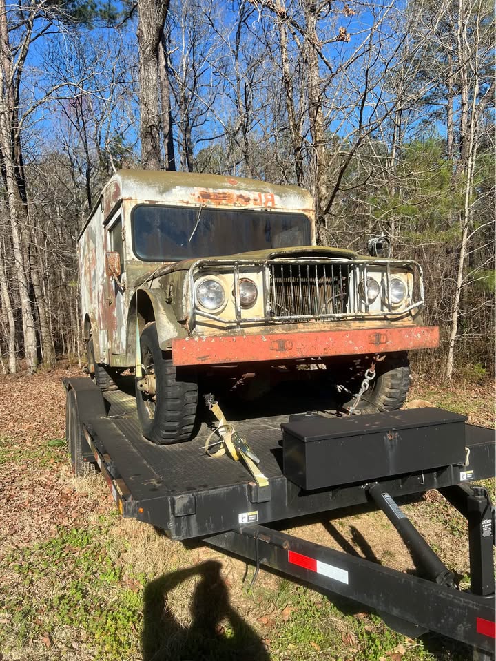 | ‘67 Jeep M725. Rot free body. Belonged to a friend of the family for more than 30 years. Hasn’t run since early 2000’s. Was in driving condition when parked. Easily the nicest condition unrestored 715/725 I have seen. Out of state buyers. Alabama DOES NOT TITLE vehicles over 30 years old. Bill of sale only. |