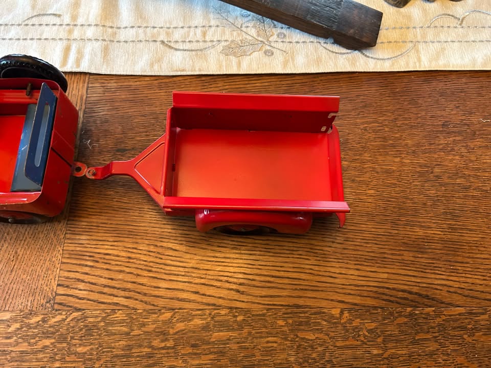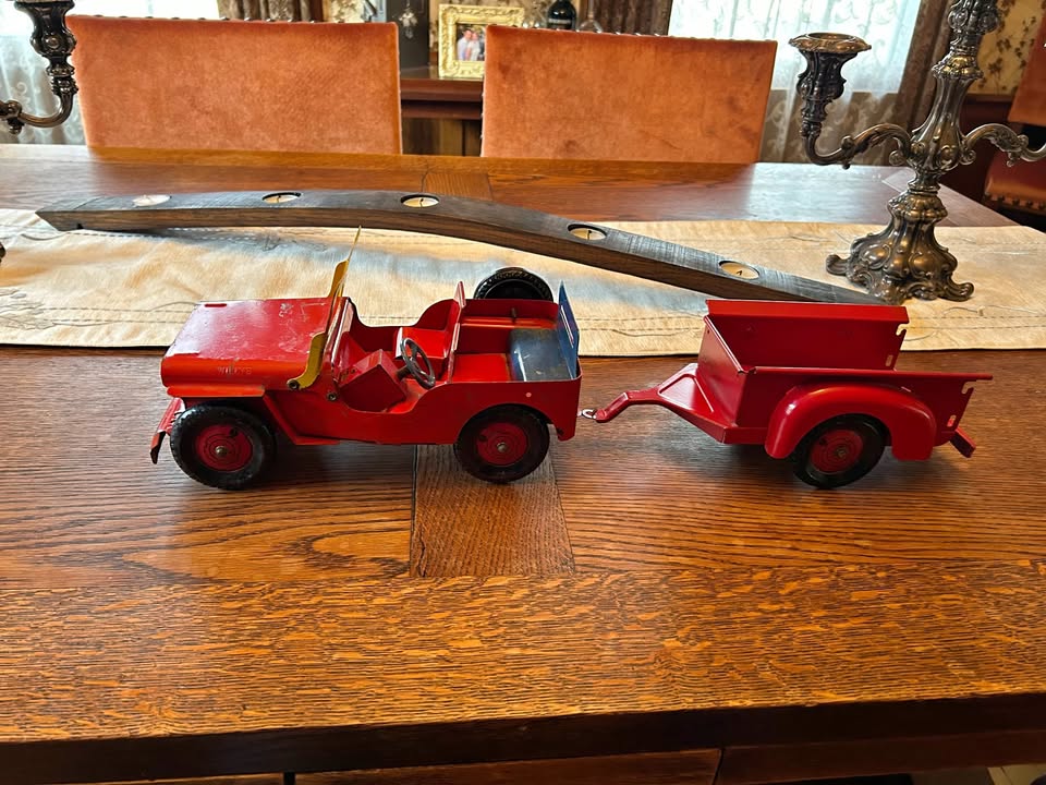 | I am selling a vintage pressed steel 1950’s Marx Toy Co. Willys Jeep with trailer from my collection that is in excellent condition for its age. Look at bthe pictures and contact me with any questions. |
