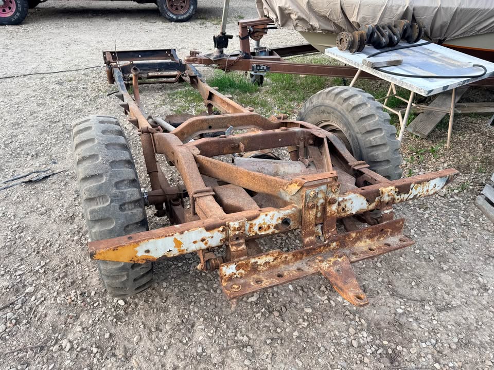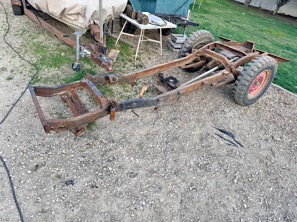 | Early Willys mid-50s CJ5/FC150 frame. Comes with rear axle (Dana 44) rear wheels/tires not included. |
