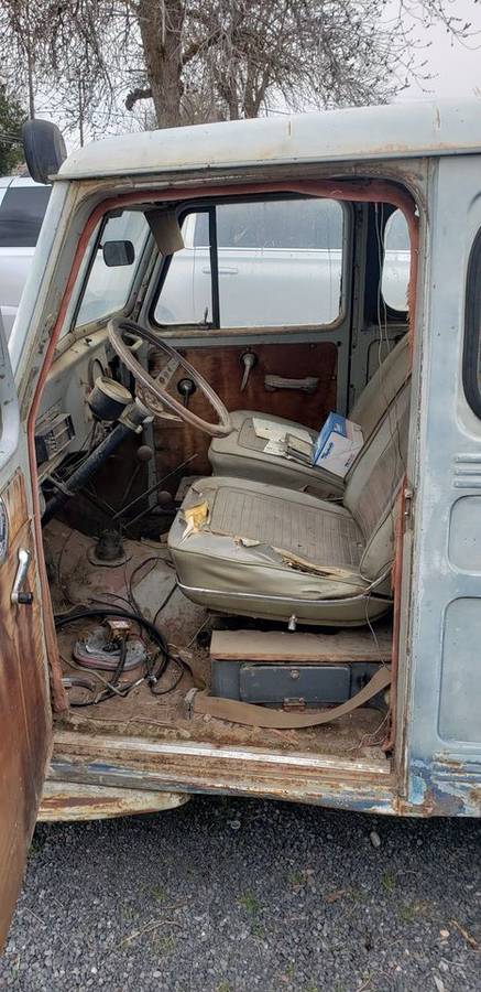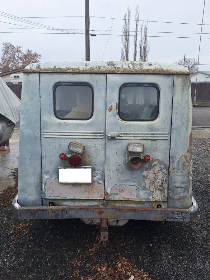 | !!!GREAT PROJECT VEHICLE!!! Four wheel drive. 3 Speed manual transmission. Chrysler 225 cu in slant six. Blueish Grey exterior Rust around wheel wells. Floorboards are solid. Has service doors instead of tailgate. Clean title. Bring a trailer does not run! $2000.00 USD FIRM |