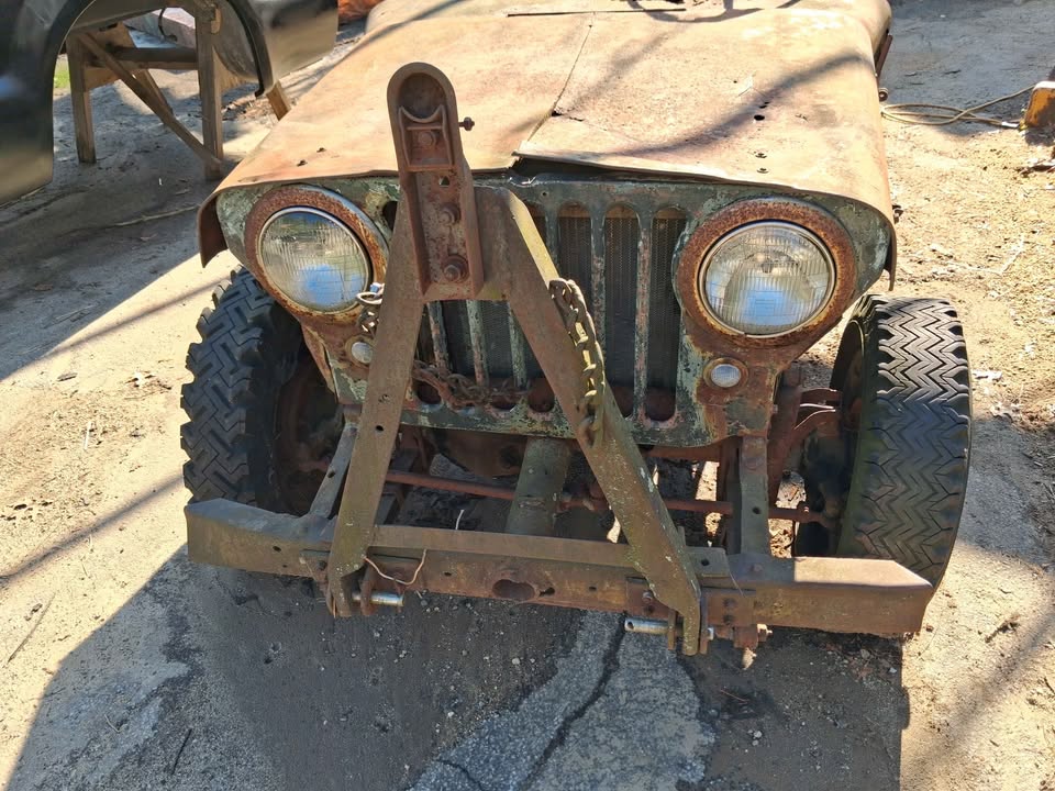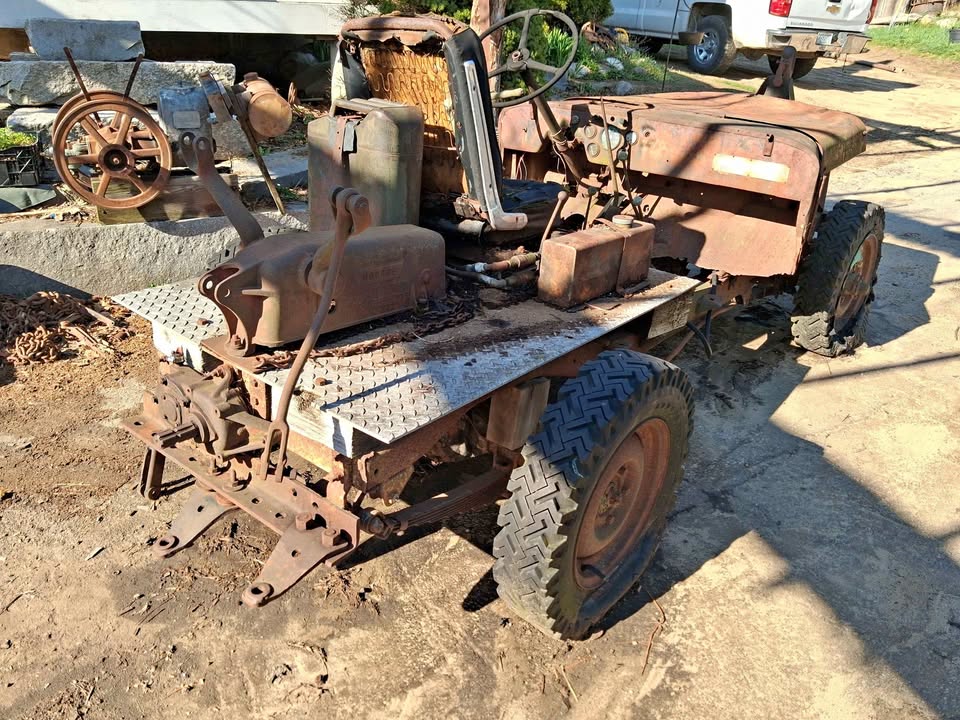 | I just acquired this and am debating redoing it myself or letting it go to a hardcore willy’s collector… very hard to find monroe’s three point hitch with original oil tank and valve and hydraulic pump, and PTO. was converted into a tractor 75 years ago.So the frame still appears to be very good! These kits were sold so servicemen coming home from the war could convert jeeps into four wheel drive farm tractors…. also, love trading old iron, let me know what you’ve got…… |