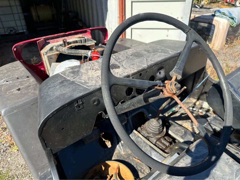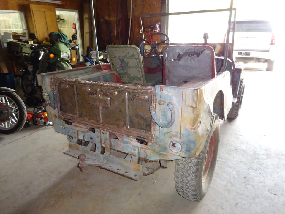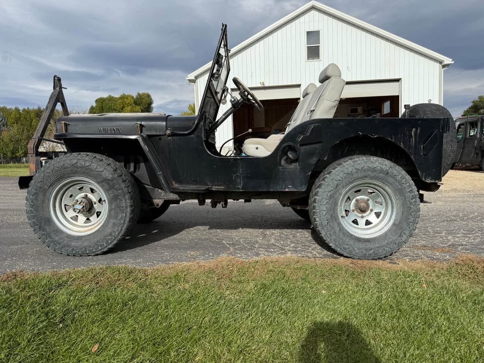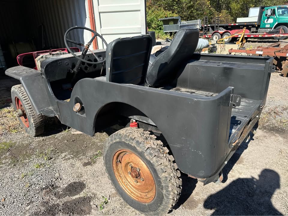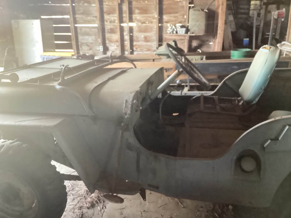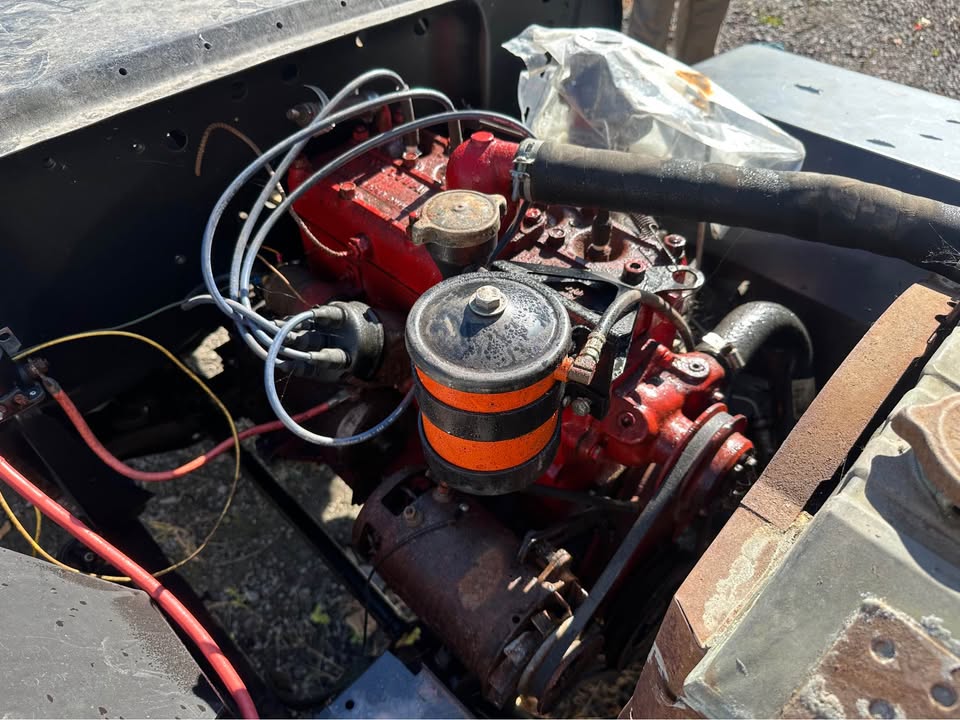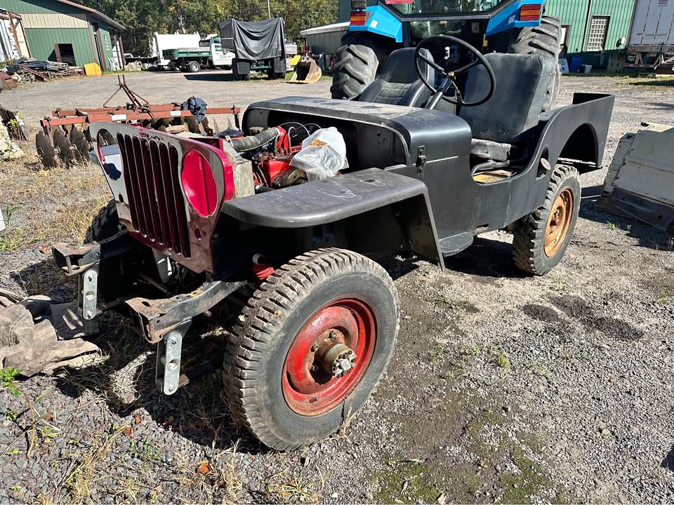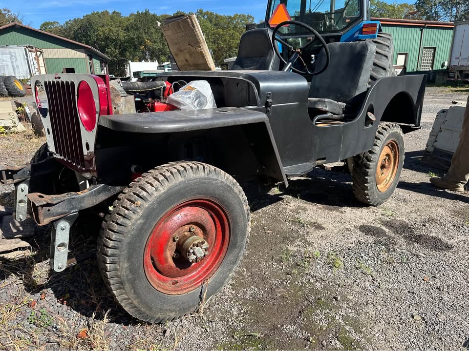 Its sitting inca mid 60s cj5 frame with axles. Rolling and I can deliver loacally. $600 obo! Im in pa 18707. I’m looking a some 16″ wheels 2 to 5 of them depending. 7.50×16 tires. Canvas top, 1/2 top or summer top, Holly 1904 carb, cj2a or cj3a air filter and hat. M38 gauge plate with 12v gauges, vacuum wipers, tailgate spare tire mount. Maybe other stuff ?