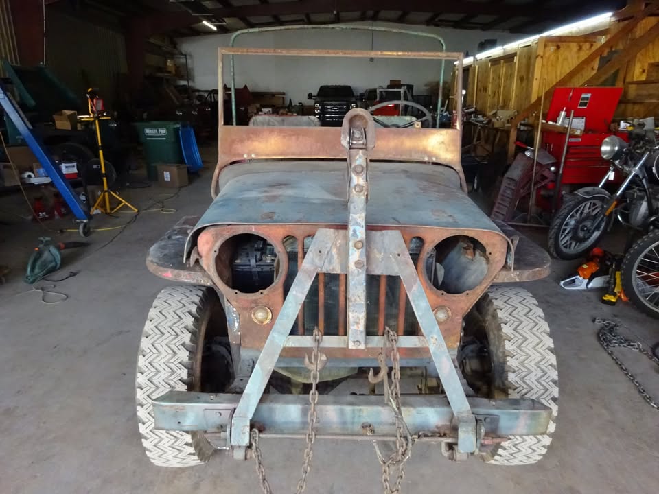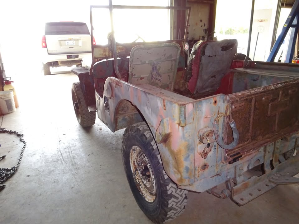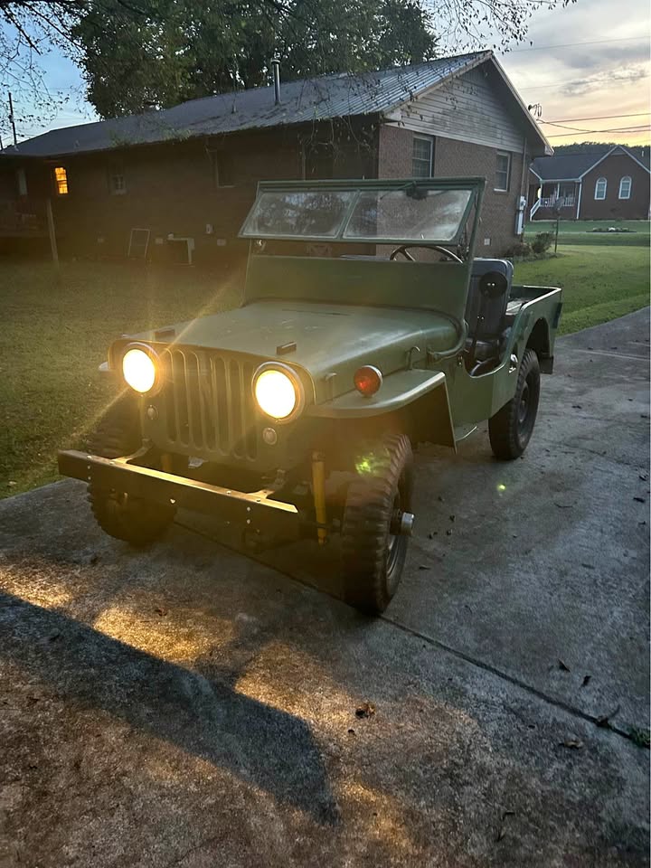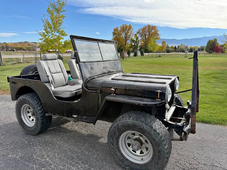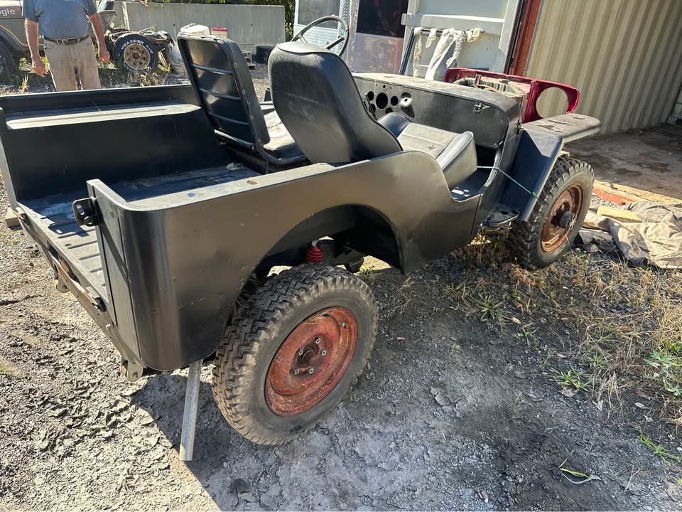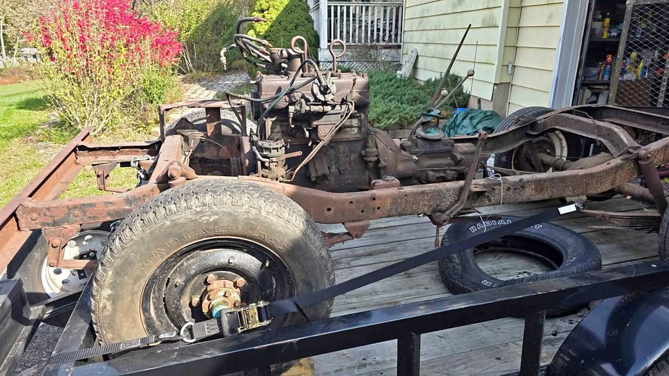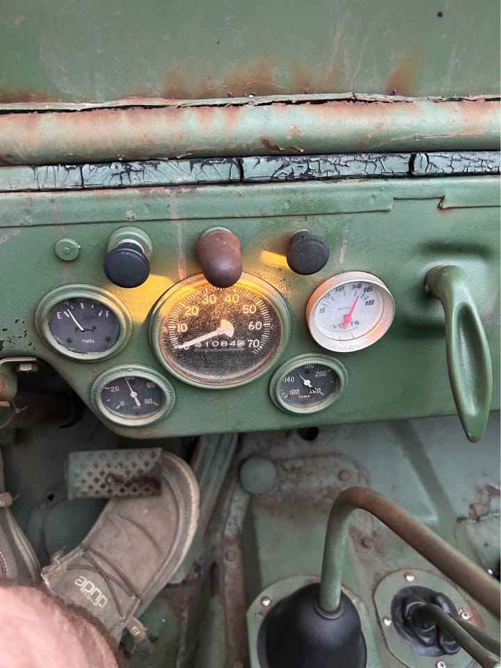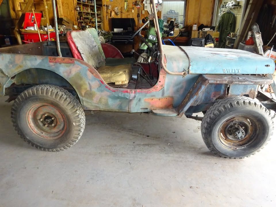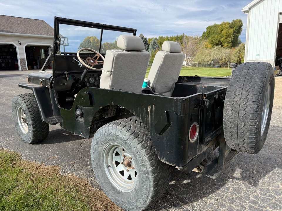 Its sitting inca mid 60s cj5 frame with axles. Rolling and I can deliver loacally. $600 obo! Im in pa 18707. I’m looking a some 16″ wheels 2 to 5 of them depending. 7.50×16 tires. Canvas top, 1/2 top or summer top, Holly 1904 carb, cj2a or cj3a air filter and hat. M38 gauge plate with 12v gauges, vacuum wipers, tailgate spare tire mount. Maybe other stuff ?