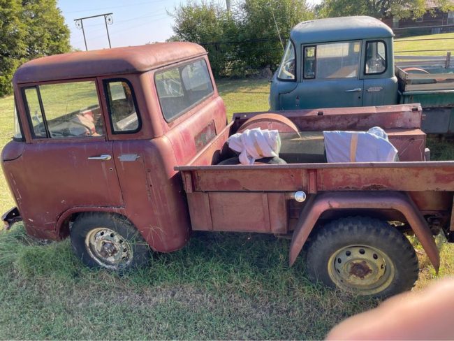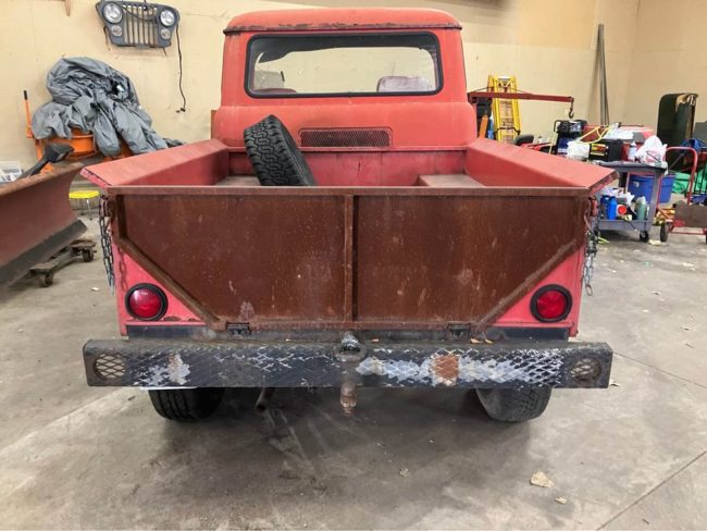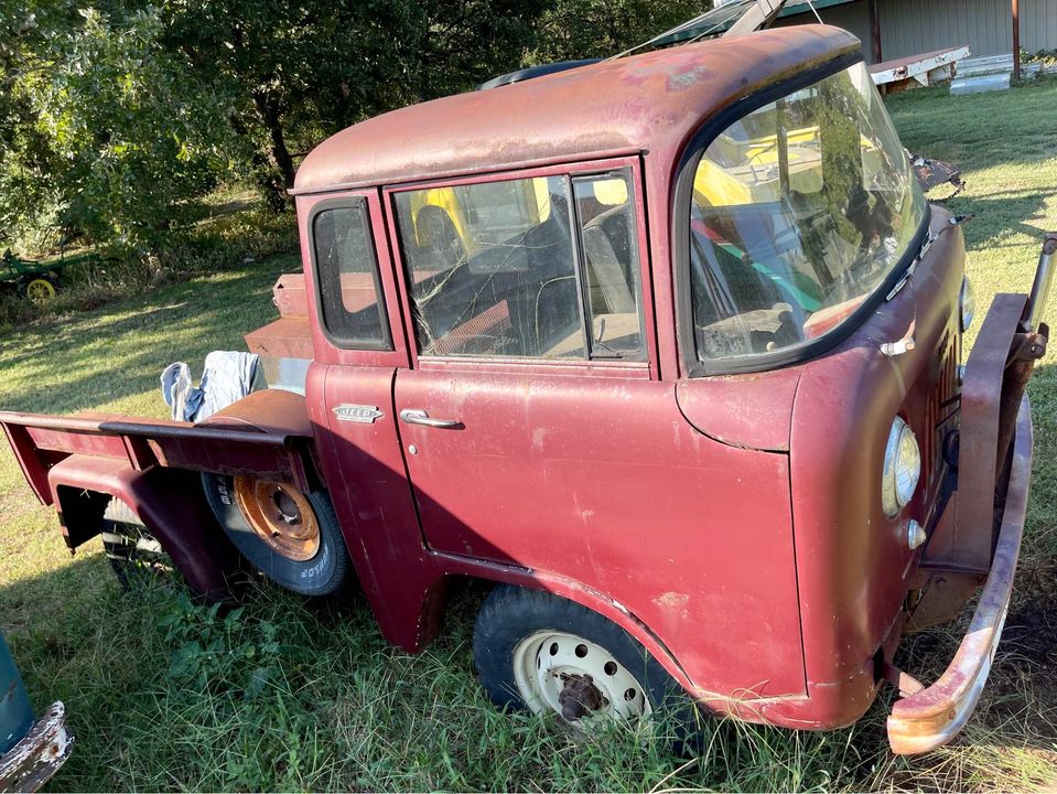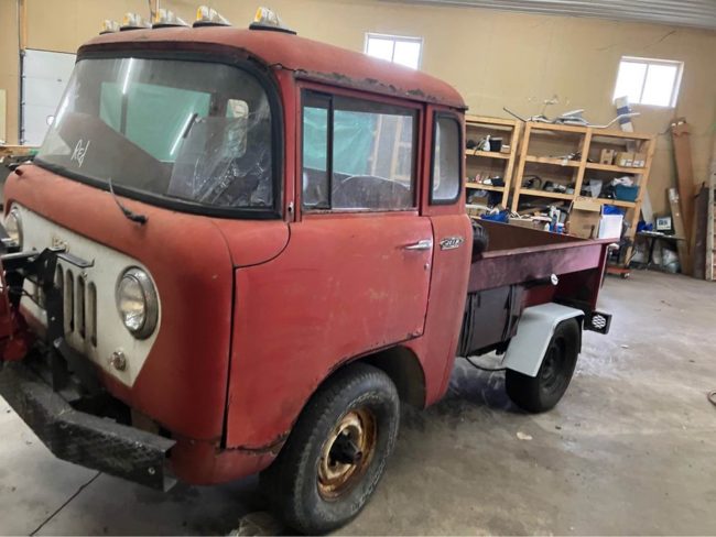 “1964 Willy Jeep FC150 Fc-150 forward control. Starts on starting fluid. Moves, shifts, been sitting since 2016. Clean Indiana title in my name. Good vin plate. At the time it was the only fc-150 titled as such in Indiana. Tires hold air for a few hours. Not drivable but could be pretty easily. F134 engine. I believe it to be a 4 speed trans. Reverse is up and to the right. Aftermarket bed. Rusty sheet metal. Solid frame. 4×4 with manual hubs. Western cable plow not currently operational. 6 foot blade. Project. Broken windshield and drivers window is cracked. Roof has rust above gutters. It’s cool because it still exists. I believe I am the 3rd owner. Originally owned by a concrete company in a nearby town. Drum brakes. Manual steering, mechanical clutch. Bring a trailer. Only trade may consider is a Chevy 2500 plow truck or better”