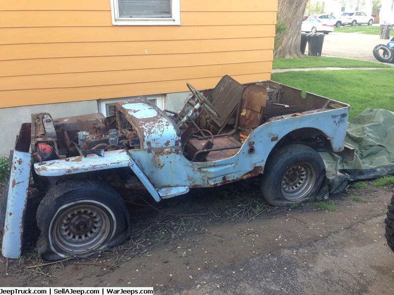 “I have for sale a cj2a that has a a ford gpw tub and fenders on it. The engine is stuck and there is a title. It does have the cj2a windshield, hood, grill, engine, t90 transmission, transfer case, axles and radiator, lots of parts for the money. The tub, fenders and several small parts are f marked. Don’t ask if it is still for sale, if the add is up, it is for sale.”