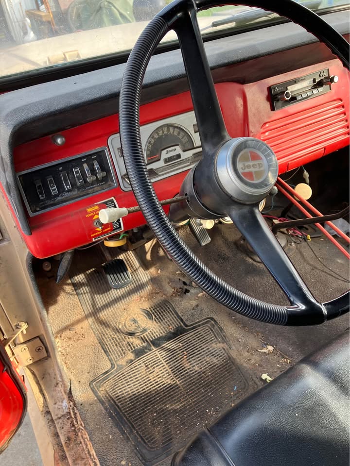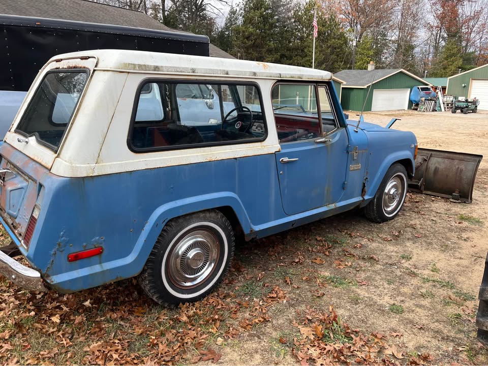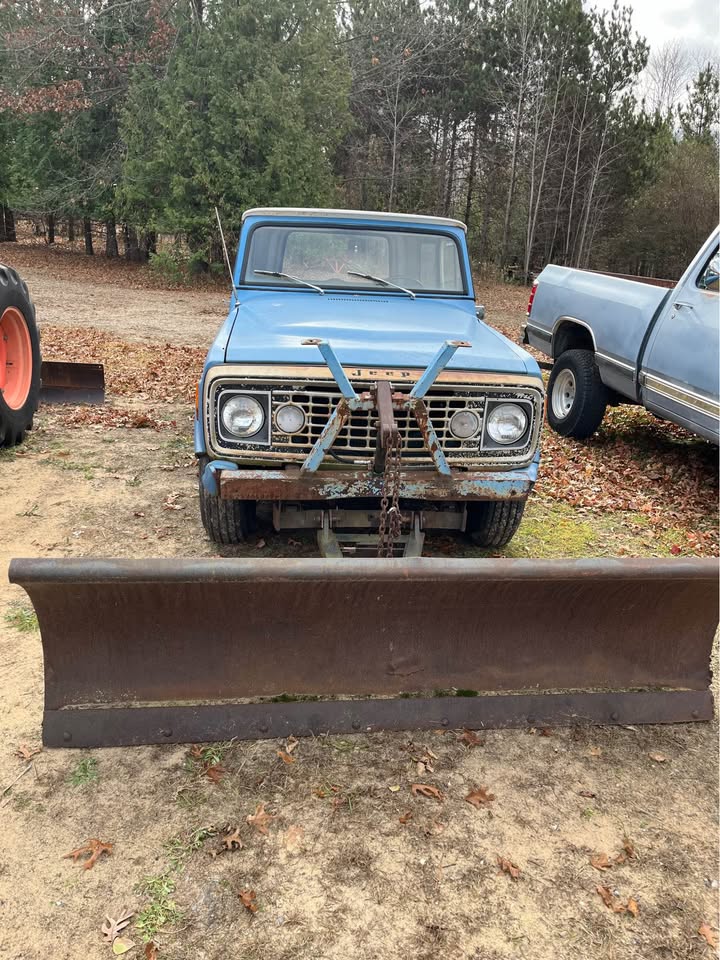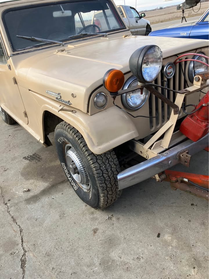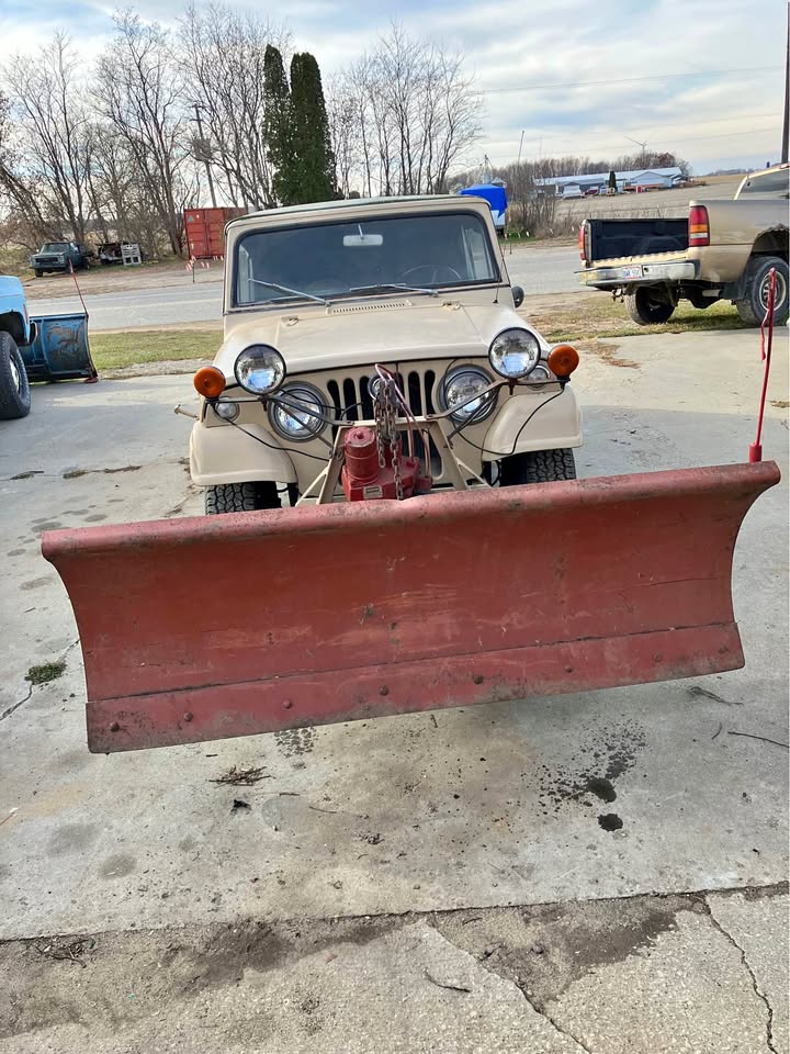 Jeep Commando Roadster with snowplow, convertible top an canvas too, tires are good, V 6 motor, standard transmission 75000 miles. Will need a new top eventually.