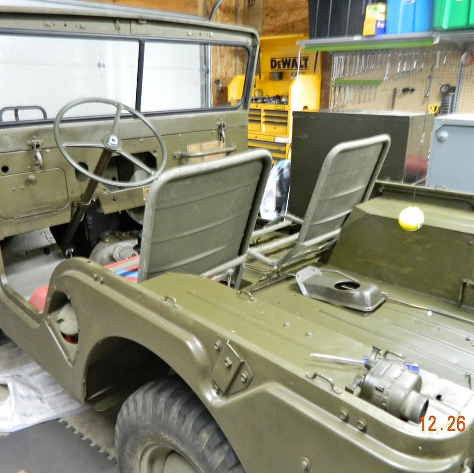 If listed I still have it, if you ask expect no response. 1952 M38A1. 134 F-head engine, I obtained this partially restored frame off, I started to finish it but price of parts are just too high. I dont have to sell and not dumping for less then I have in it. Do not send offers, price is firm, period. Body was taken off frame, all rust was patched and welded up. Have all body panels, Engine, trans and transfer was all rebuilt. Engine still needs parts to run such as Dist, fuel pump, It was a 24V system, Had not decided to make it 24V or 12V. No wiring currently in vehicle, No brakes, I rebuilt steering box, new steering wheel, new gas tank and lines, new brake lines and wheel cyl not installed, Have original generator, Voltage Reg, gauges, have the following original parts but need rebuilt or new ones, distributor, fuel pump. have seat frames but not cushions. Between last person and me about 15,000 has been spent, completed I have seen them for sale for 25-30,000. No I dont have canvas, 24V parts are super expensive, 12V are more reasonable but would not be original or waterproof. The engine was rebuilt 5 years ago and never ran, I did pull head to check it, have pics with head off. Have receipt of rebuild. Has new carb, but not original type, they want 700 plus for original type reason not going to finish, Needs exhaust new tires, I just put on new windshield seal, to much to list. Yes I have title and no I don’t want to trade unless you have a real running classic.