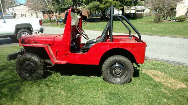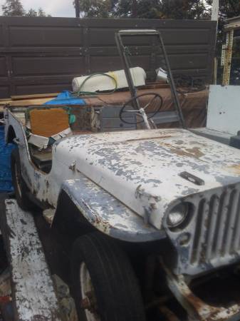 (08/23/2015) “This 1940’s MB Willy’s jeep with a 1949 front clip and over head cam 4 cyclinder, runs great, clean title neefs minor work to get back on the road. Asking 3,600 please call or text to the number listed anytime.”