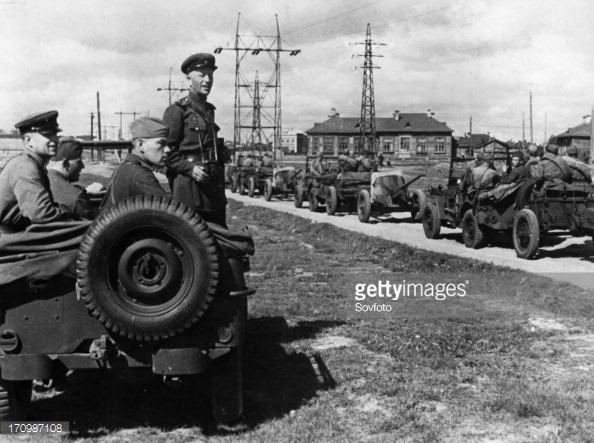 The caption of this photo describes these as “jeep ambulances”, reminding us that the term jeep was getting applied to a variety of things at this time.