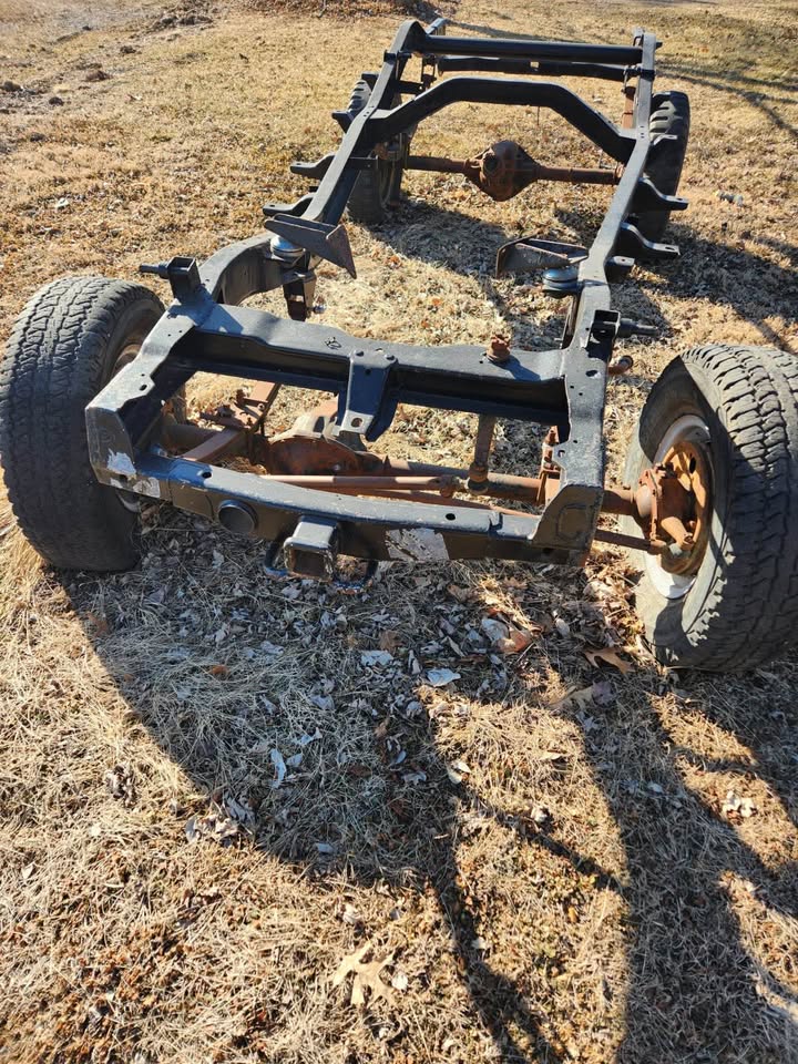 | 1963 willys wagon frame been sandblasted acid etch primed painted black with reciever hitch front and rear for winch plate . 4 New leaf springs packs from (Merrill axle) $660. new shackles , REBUILT Dana 44 rear and REBUILT Dana 25 front $1100 , engine swap kit and transdapt kit for sbc . I have the original 230 ohc tornado motor too if interested ….make offer |