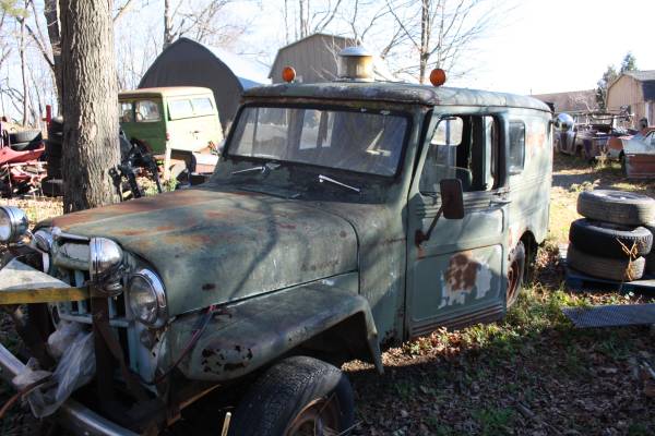 “62 willys panel for parts 4WD flat head 6 runs ∧ drives no brakes lots of good parts solid frame snow plow”