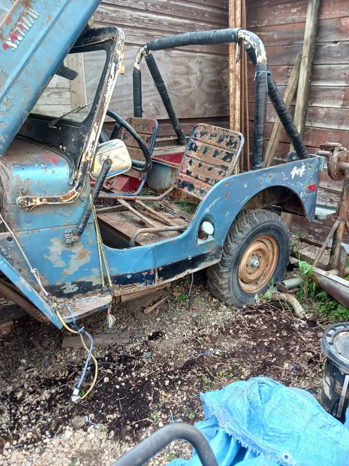 1947 Willys Jeep. Engine is stuck. wheels do roll. Engine did hold oil and radiator did hold coolant. Spark plugs come out easy. Got it to restore but too busy to get to it right now. Asking $2500. No trades. No low ball offers, won’t hurt my feelings if it doesn’t sell. No title.