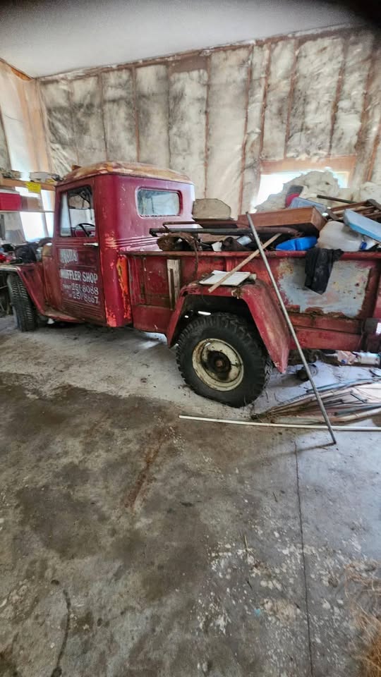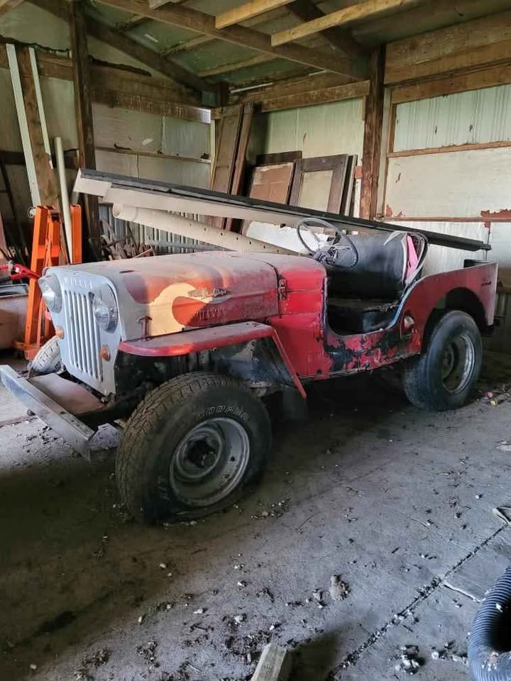 Old Jeep Willy project. Was used for years as a digger for tiling so was equipped with a PTO. It needs a lot of TLE and work but a rare find as well.