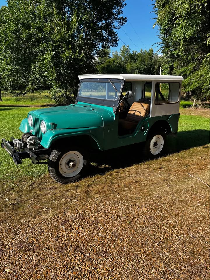 Up for sale is an 1964 Willys CJ5. It is a Mississippi Jeep, and has spent all its life there. It is sound and has not been molested. It has a humongous winch on the front that runs with a PTO.. I also have an extra winch. It has a hard top and hard doors with rollup glass. One of the doors at the bottom is starting to rest, but has not broke through the paint.  It is a four-wheel-drive and it works. It has a toe hitch on the front. It folds up in a cool manner. She has a four-cylinder motor with a top speed of about 60 MPH. Why buy a side-by-side when you could own an original classic. She is ready for the street or the wood.