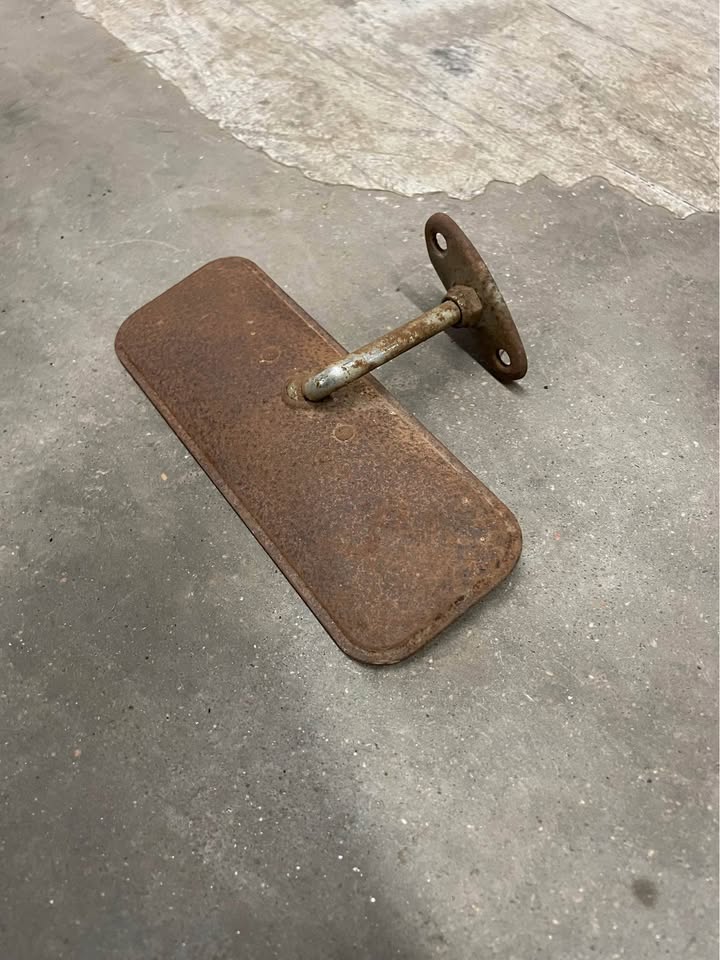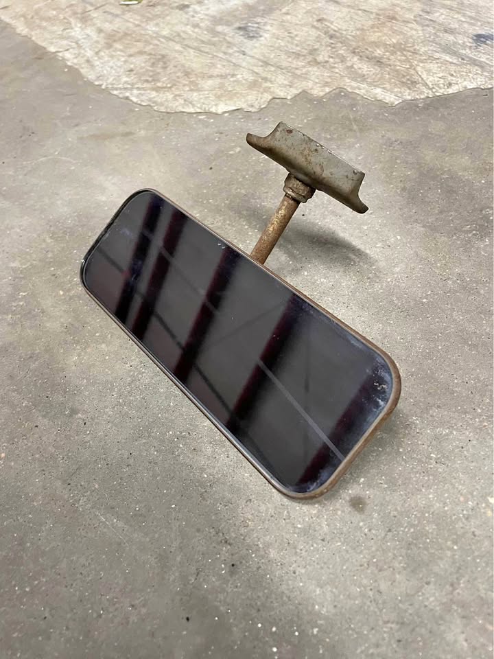 Rearview mirror form a 1953 Willys Aero Ace. The glass is in really good shape.