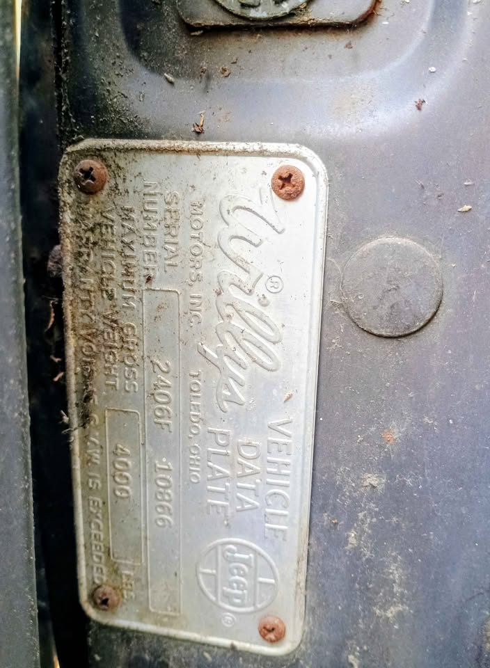 Same family Jeep since new, good candidate for restoration. Been parked indoors since 1979. Engine turns over by hand, have not attempted to start it. Was parked in running and driving condition and motor was professionally rebuilt at some point. Comes with new top in box and manuals. Good Maryland title. Delivery available from Mount Airy, Md 21771