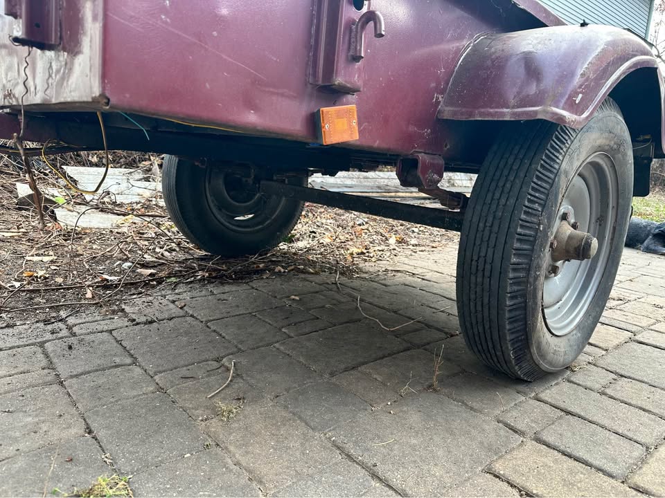 Vintage Willy’s WWII Handcrafted Wooden Jeeps Each measure approximately 9.5 inches long by 4.375 inches wide by 5.75 inches high. Both are handcrafted and painted in wood. There are metal supports for the cloth roof. The steering wheel is metal. Interesting collectables in excellent condition. $200 cash or PayPal for both.