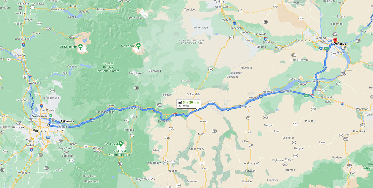 With our bellies were full from lunch and a temperature of 85 degrees (pretty high for this time of year in Portland), we drove north across the Oregon-Washington border.