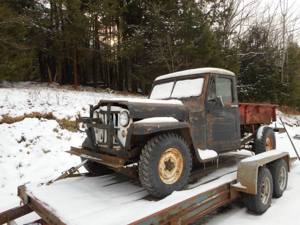 “FRESH OFF THE FARM!! RARE!! 1958 Jeep FC170 4×4, 226 6 cyl, Forward Control (Cab over) runs good, good body, no rust, painted frame. Has dump box, front winch and 8′ plow.”