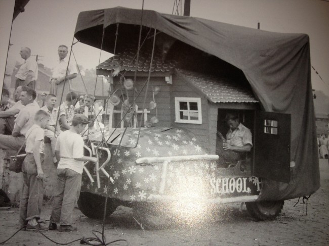 Eventually, according to the site Silodrome, the circus bought a 1959 Series 1 Land Rover and modified it with a “central steering wheel and a huge, padded seat over the rear axle”. The picture below is also from Silodrome. Here is a very short video of him driving it. Kam’s customized Land Rover has been found and is being rebuilt.