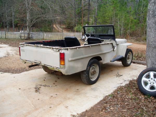 “Running gear is from a vintage CJ2A. Body custom built. Equipped with stock 4 cyl engine, 3 spd trans, hi-lo range and 4 wheel drive. Mechanically strong, good tires. Good title and vintage plates. A lot of fun to drive and to look at. Good business mascot, parade vehicle or use on you acreage, at the cabin or lake.”