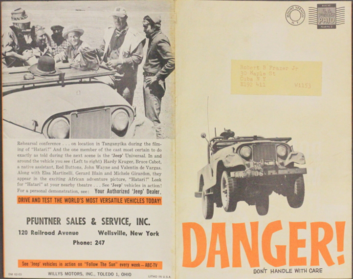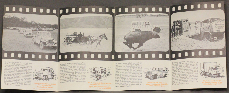 Here’s an unusual brochure that highlights a variety of jeeps used in the movie Hatari starring John Wayne.