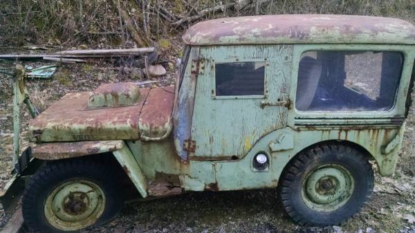 “1958 willys jeep cj5 with hard doors and top, twin stick transfer case and 3 speed manual transmission. Its pretty much original, 4 cyl engine that starts and runs well.