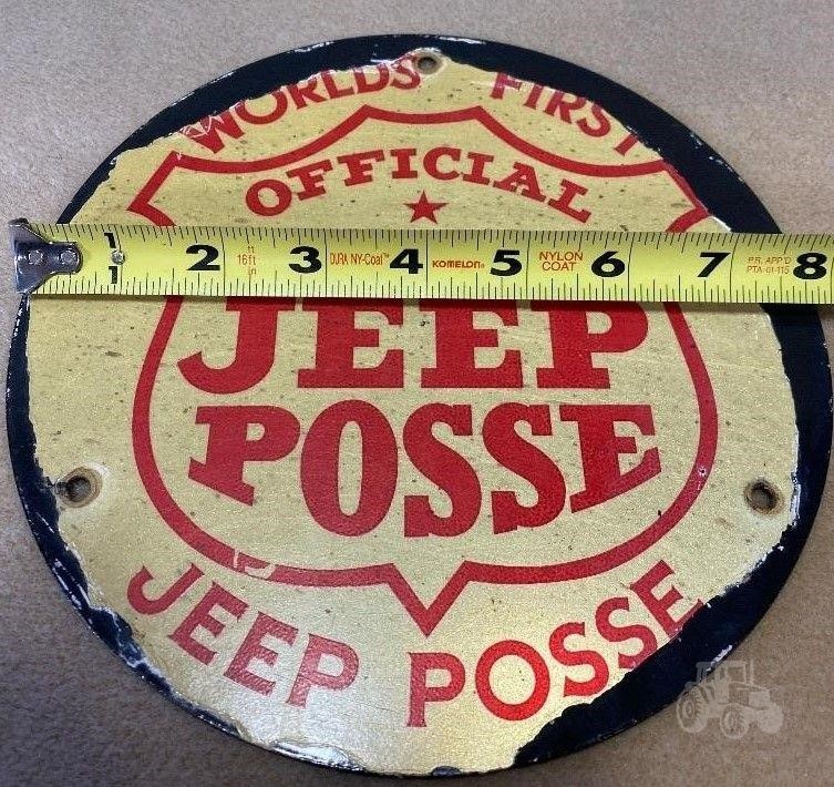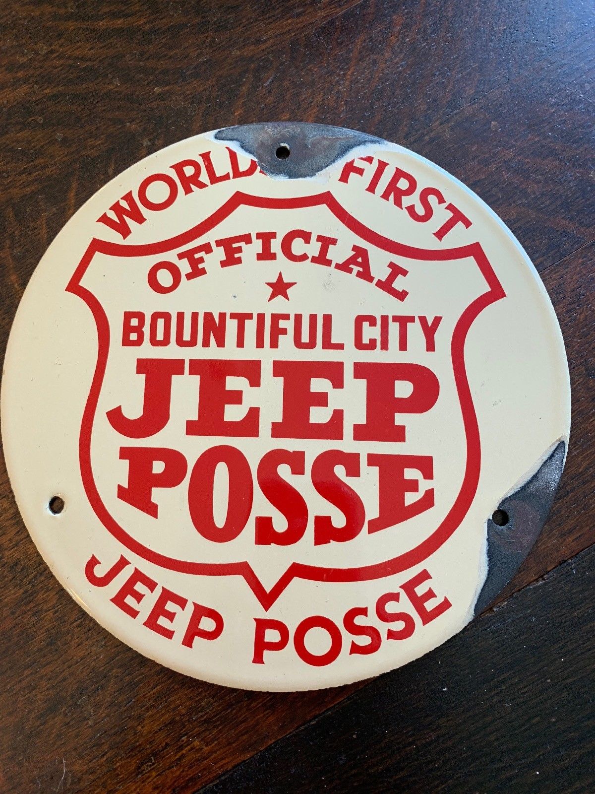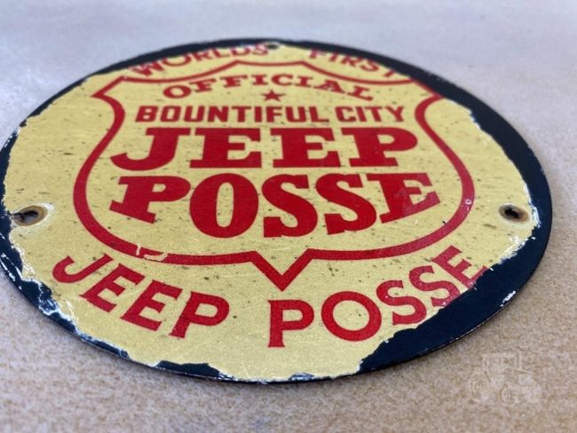 A seller out of Utah has listed this porcelain Bountiful Jeep Posse sign for sale. It’s got some wear.