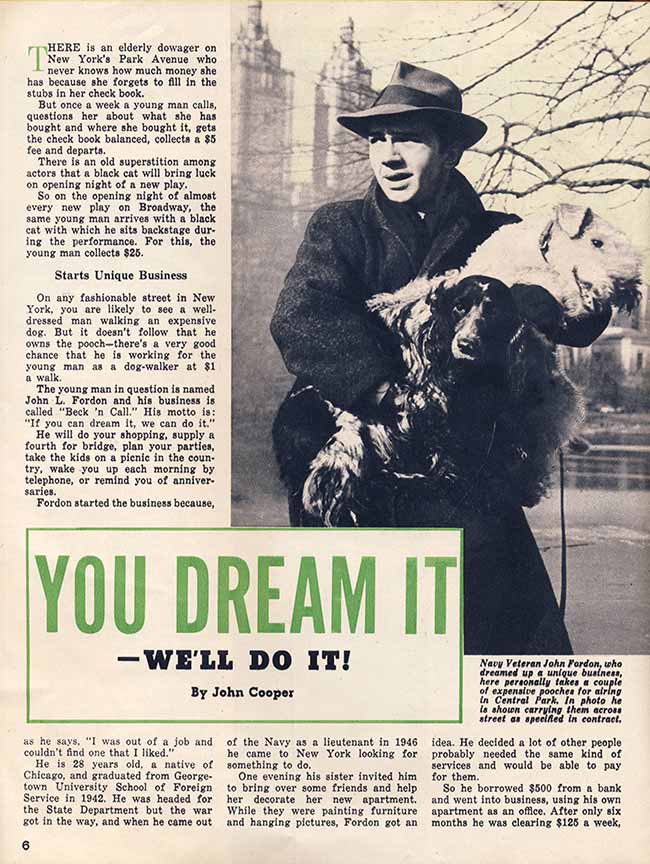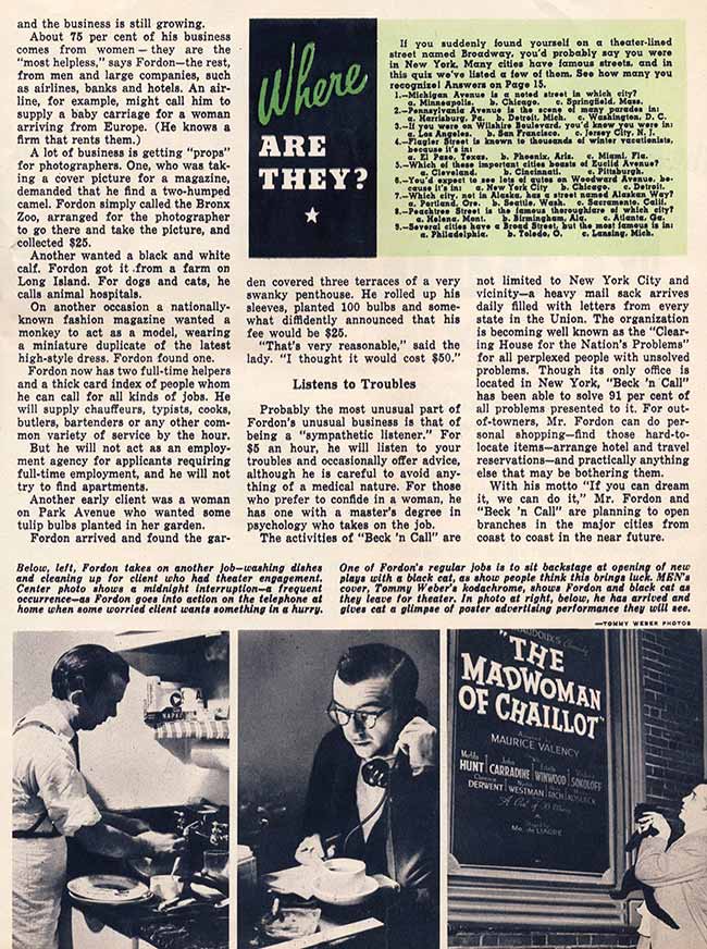 The first article is a pretty early article on Utah’s Bountiful Jeep Posse. The other article covers a man named John Fordon and his business in New York City called “Beck ‘n Call”. Finally, the Fordon article includes a quiz on streets from around the country, names as relevant to day as they were back in 1949.