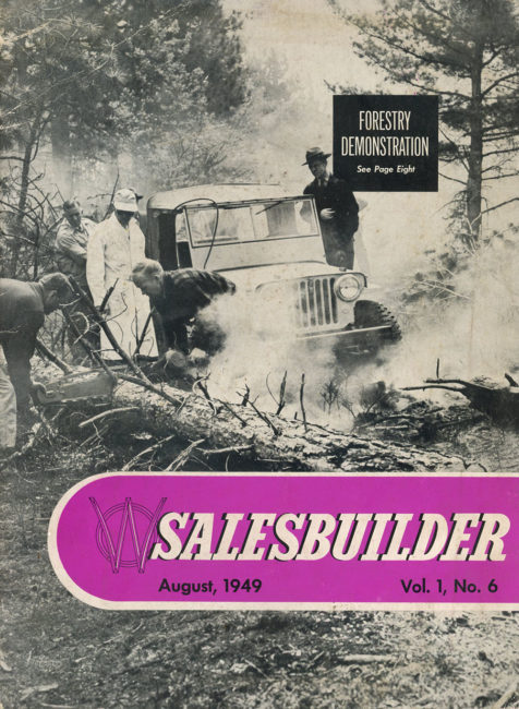 Originally Posted November 8, 2020: This August 1949, Volume 1, No. 6, Salesbuilder shows off the new 4WD wagon. There’s a report about a Forest exhibition in May of 1949 near Eagle River, Wisconsin, where the fire jeeps showed their ability to get quickly to fires. The Jeepster’s new inline 6 gets a nod, as does the Bountiful Jeep Posse.