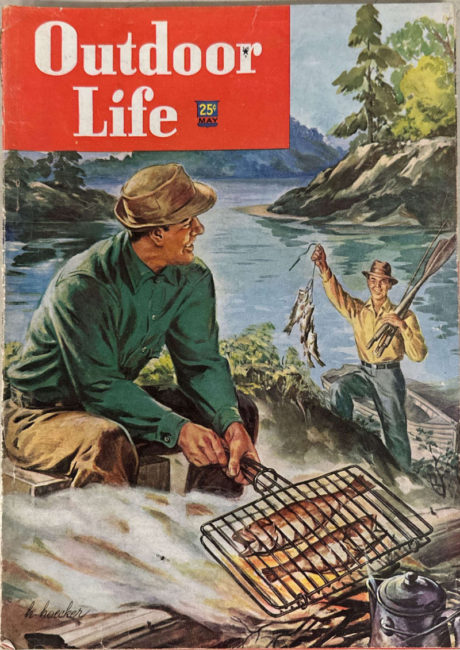 This issue includes (from a worthpoint auction), “Jeep Posse Fights Fire & Flood”, ” Turkeys of the Tall Peaks” and ” This Happened to Me”. There is also a print suitable for framing titled ” The Battle with the Wolves” by Fred R. Zepp. There are to many vintage ads such as Champion Outboards, Remington, Dupont, Heddon, Dipsy Doodle Wood Manufacturing Co., True Temper The Rod of Champion, Calvert, and more to mention, there is a color ad for Old Thompson Brand Blended Whiskey on the back cover.