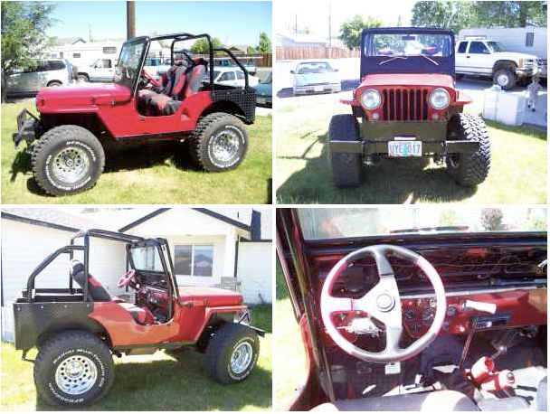 “1953 Jeep Willys, Automatic, Chevy 350, Edelbrock Carb. , Winch, Newer Backseat, soft top and bikini top. 530-570-3690”