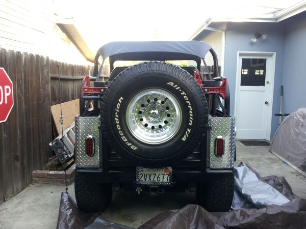 327 Chevy engine, sm420 trans, dana 18 transfer case, model 27 front, dana 44 rear. 33 in BFGoodrich tires with aluminum wheels, spare tire rack mounted with the same. Newer pain job and new seats front and rear. Newer carpet. Extra 15 gallon tank mounted. Hi lift jack with zx and shovel mounted in the back of tailgate. New Bulldog 8000 pound with winch. Great Jeep, but needing something for commuting.”