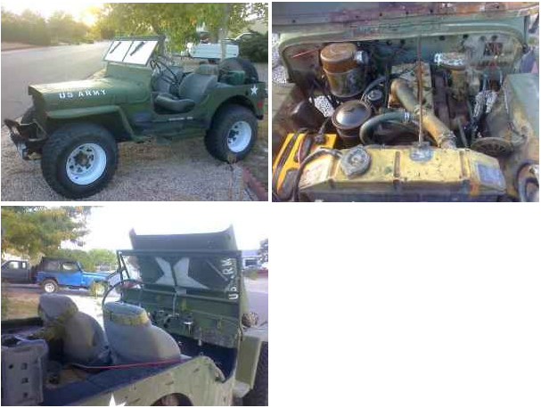 “This is a 1942 Willys Slat Grill MB. Its a project I bought years ago and has been sitting in collection mode ever since. Meaning I have been accumulating the parts to restore her. I decided I wasn’t likely to get to this project or my #277 45 CJ so I’m letting them go. The 45 is gone so here goes the Slatty. I’m selling it just as I bought it with the exception of it now has the original slat grill on it as when I bought it someone had put a stamped MB grill on it. Guess they thought it looked better. The serial number of the slat is 112200 and the body tag and frame tag both match. The 3 tags are still on the dash but one has a small piece cut out of it for some unknown reason.The engine SN is MB219002 which I believe is a later motor. I’ve never tried to start it, but the motor turns freely. The transmission is original with the right hand fill and I believe the transfer case is original as well. The transmission and transfer case are stuck in gear as it sat outside for many years before I bought it. I’ve never tried to free them up or look at them. The drive shafts are disconnected so you can move it. I believe the spare tire carrier is correct. It has the “gas” gage and the 30 amp meter. The key switch is still there with the key. The windshield frame is rock solid. The hood has a round hole cut in it. It does have the riveted “slat grill” oil pan. The frame is good. It has one of the 2 hinge tool box lids in place with the lock. The drivers seat is the original split back rail but the pan has been opened up for the larger filler. Take a look at the pictures and if you have any questions just ask. If it doesn’t sell I’m going to spend a few hours on it and see if I can get it running and driving….”