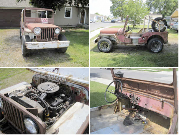 “Flat fender jeep body. Has the general rust under the passenger seat and drivers side. It was a rare long bed that in the 50’s I road in. But between then and when I bought it someone cut it down to a regular CJ2A size. the cut is just stitiched and needs finishing. Overall its not a basket case but will be a good project. I also have a roll bar that is custom for a 2A for $50 that is sitting on it and a windshield that needs the inner piece and a new panel across the front for $50. There are side diamond plate for the foot rest and along the side for $50 and some other 2A and 3A parts. I also have a complete project jeep for $1300. Body needs some work but for its age is better than most. You buy the project I will throw in the body listed above for any part it may need. I have L head motors that will need rebuilding for $300.”